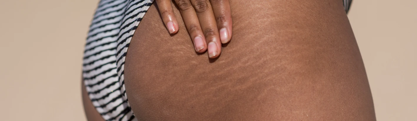 Les vergetures sont liées à une déchirure des fibres profondes de la peau par un étirement trop brutal et rapide de celles-ci. Elles se situent principalement sur le ventre, les seins, les bras, les fesses et les cuisses.